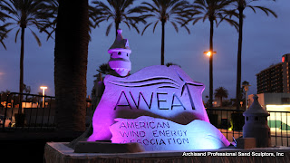 Archisand built this way cool sand castle and logo for the American Wind Energy Association (AWEA).