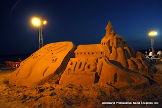 Archisand used the services of two tractors to create this “Super Sized” logo for the Hughes Corporation, HUG, Talk Listen learn event.