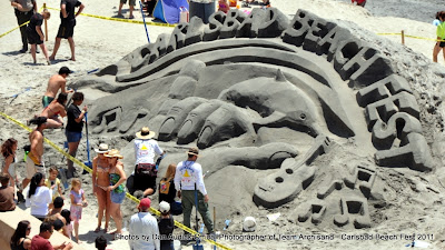 Carlsbad Beach Fest 2011 was another great event this year! Archisand teamed up with several local volunteers to create this way cool rendition of the event poster in sand. complete with the ” Hang Loose” hand, fish and music notes. To view a real nice story about the event from Local Media, click HERE