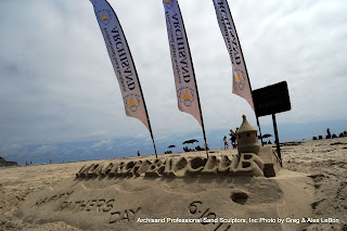 The father and son team of Greg LeBon and Alex LeBon constructed a way cool logo sand sculpture and put on an informitive workshop and sand castle contest. The Monarch Bay Club is part of the St Regis Resort and is located in Laguna Niguel, California and is a private beach club.