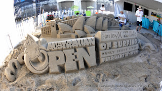 Visit us downtown Huntington beach by the pier tomorrow for our final weekend out on the sand. See our custom sandcastle design & construction of the Australian Open of Surfing logo with a backdrop of Sydney Harbor Bridge and the Sydney Opera House.